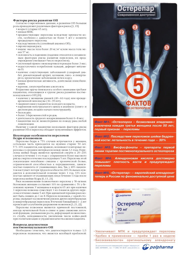 Купить . от 408 Р . . . Однако данный эффект не наблюдался при приеме препарата Остерепар в дозе 70 мг 1 раз в неделю . Препарат Остерепар может быть назначен с осторожностью (из-за риска развития . . .