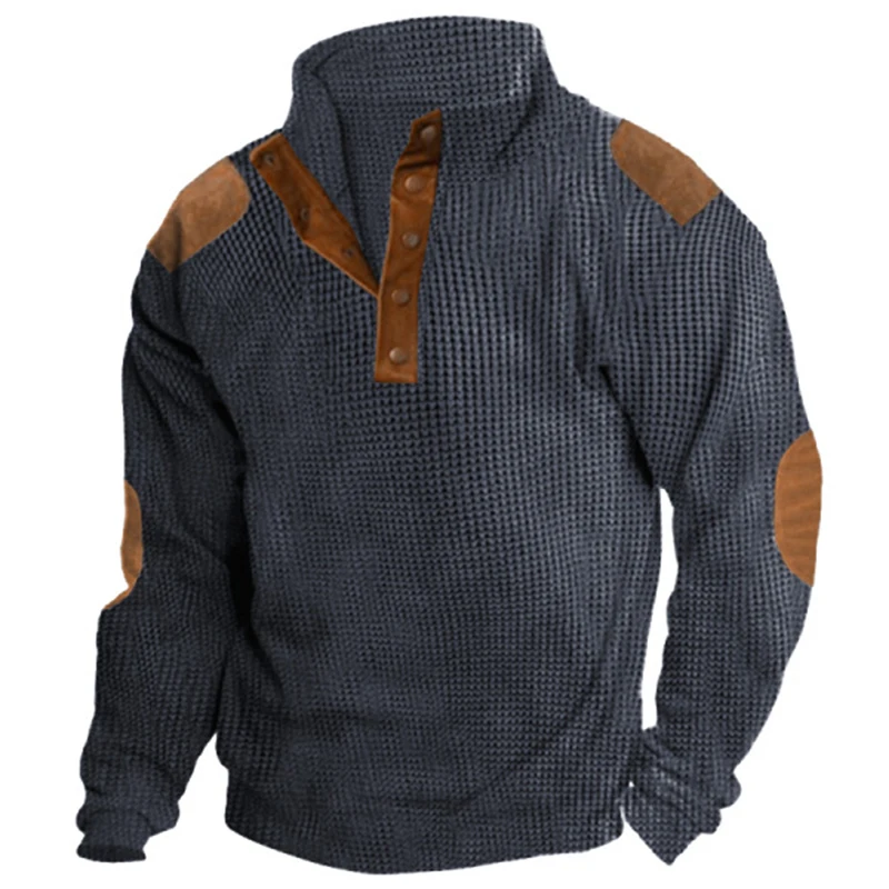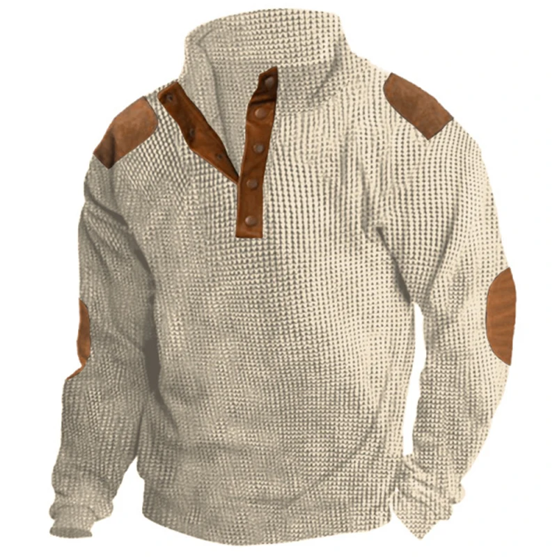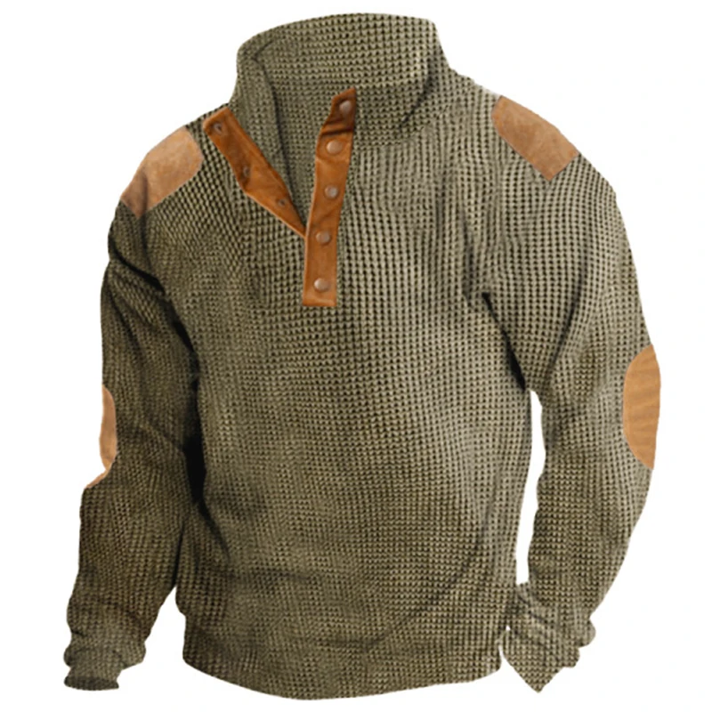 Купить Outdoors Retro Waffle Patchwork Men Sweatshirt 2023 Spring Stand Collar Button Man Tops Casual Long Sleeve Loose Hoodie Pullover за 1550рублей