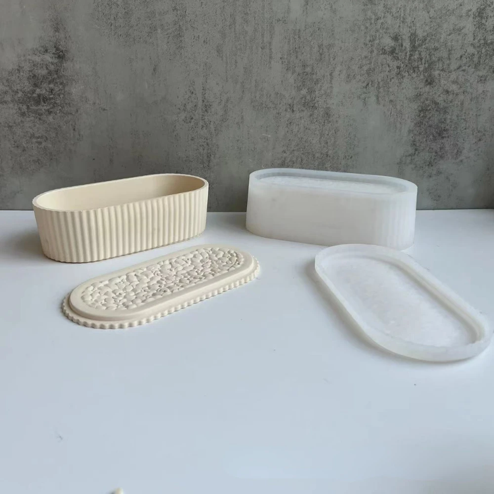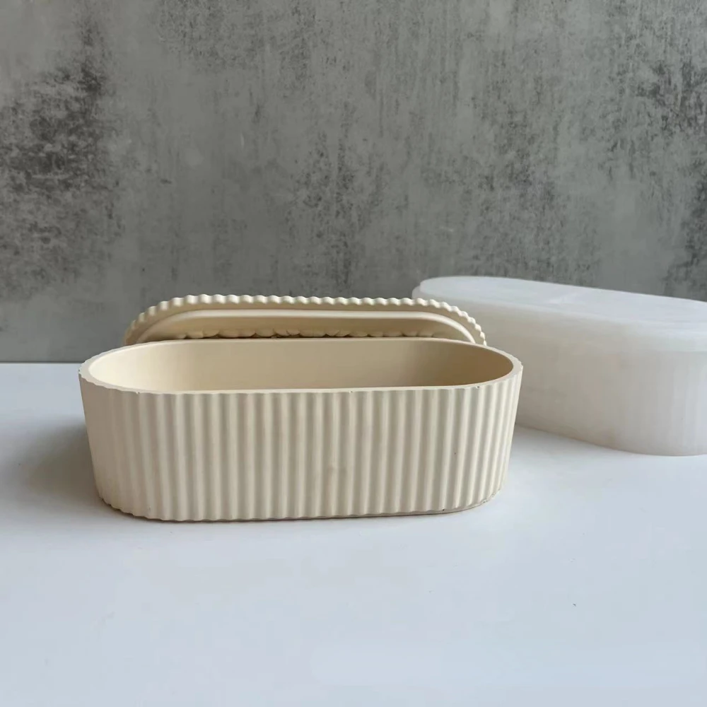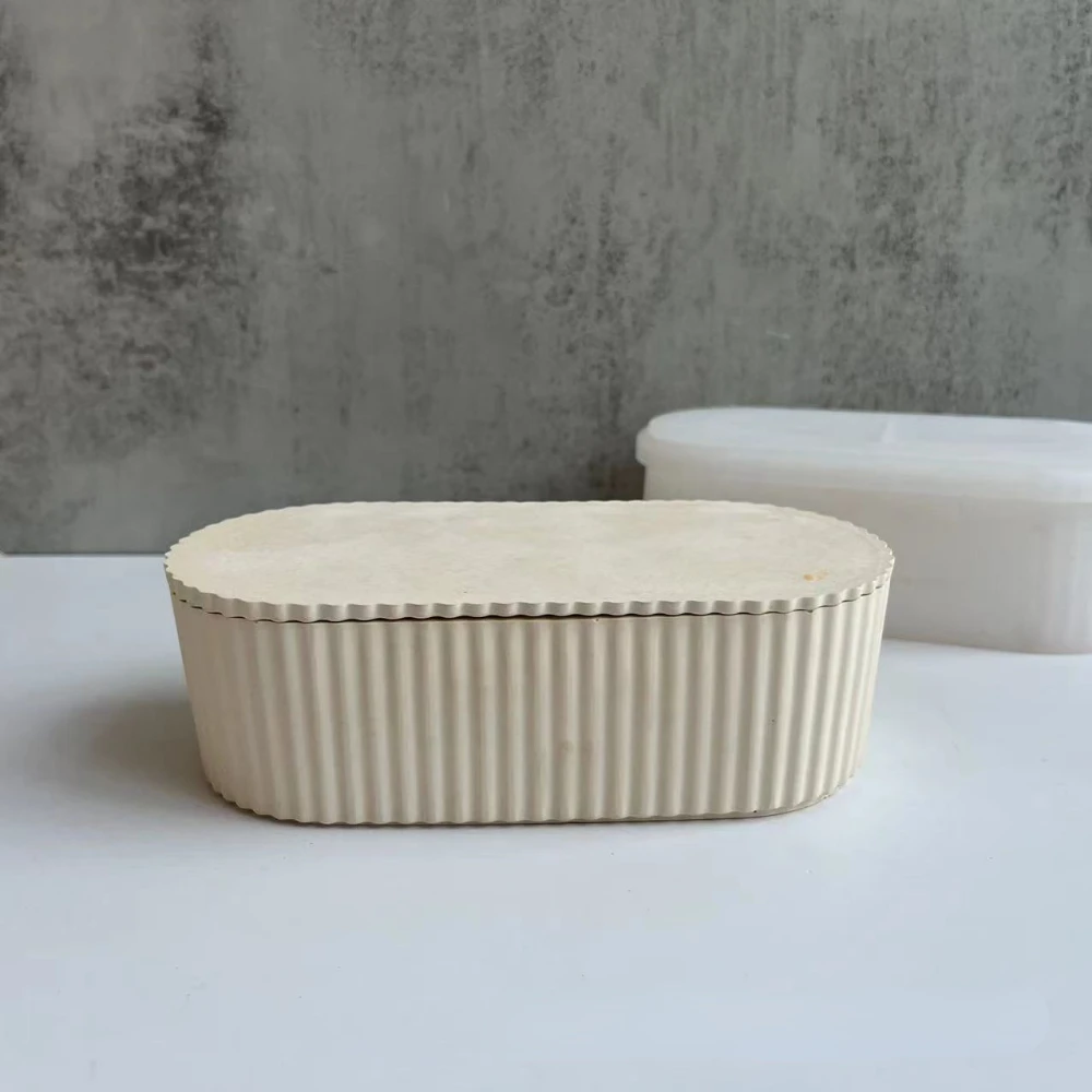 Купить Oval Stripe Large Flower Pot with Cover Storage Jar Silicone Molds DIY Handicrafts Gift Cement Plaster Candle Jar Home Decor за 750рублей