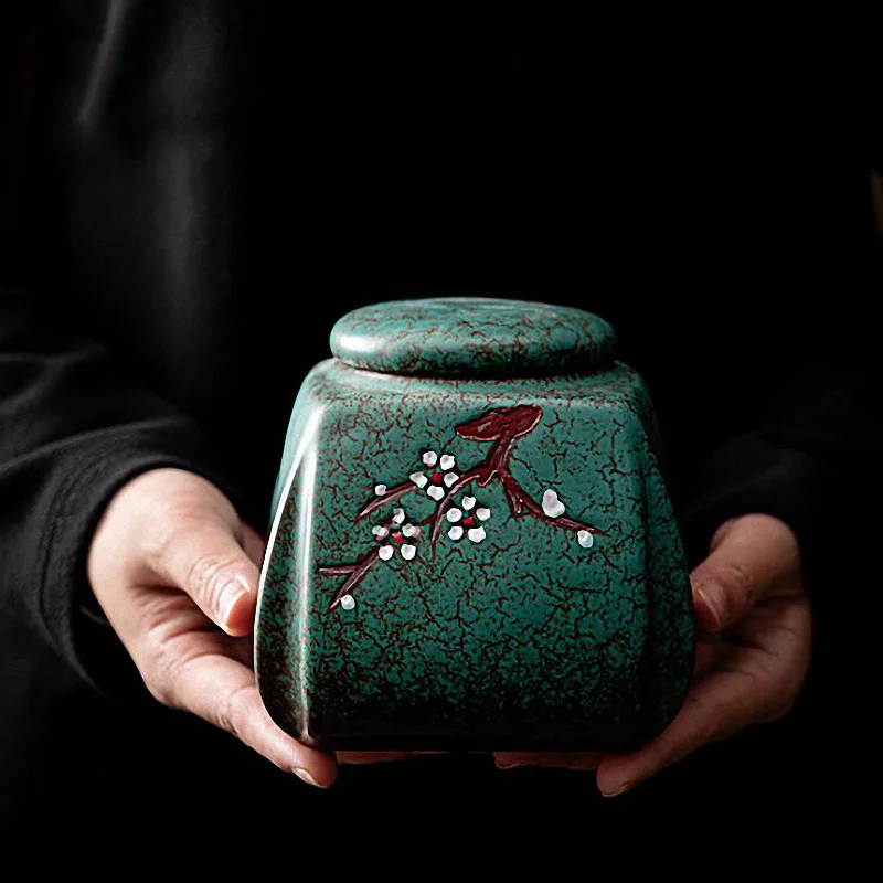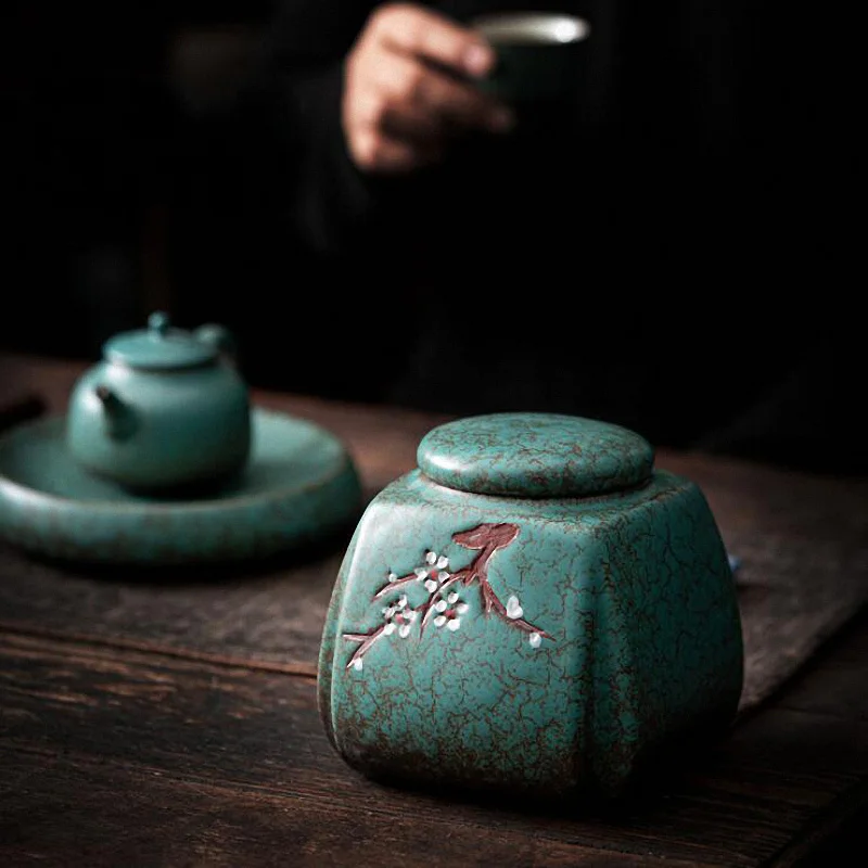 Купить PINNY Turquoise Glaze Embossed Plum Blossom Tea Jars Ceramic Storage Containers Chinese Kung Fu Tea Accessories за 900рублей