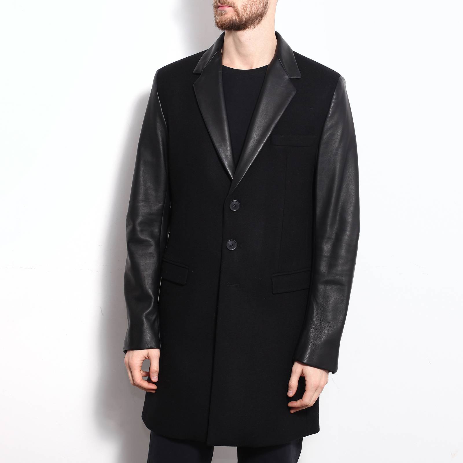 Пальто С Кожаными Рукавами Купить