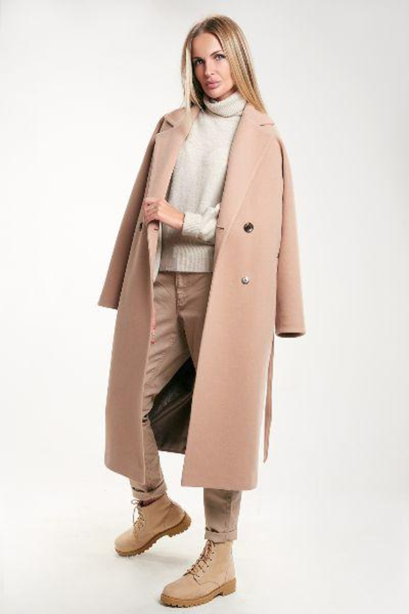 Бежевое Пальто С Черными Ботинками
