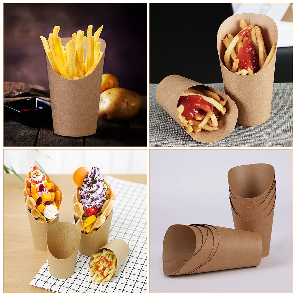 Купить Paper French Cups Holder Cones Boxes Fry Popcorn Cup Snack Fries Kraft Out Take Disposable Box Charcuterie Chip Cone Containers за 850рублей