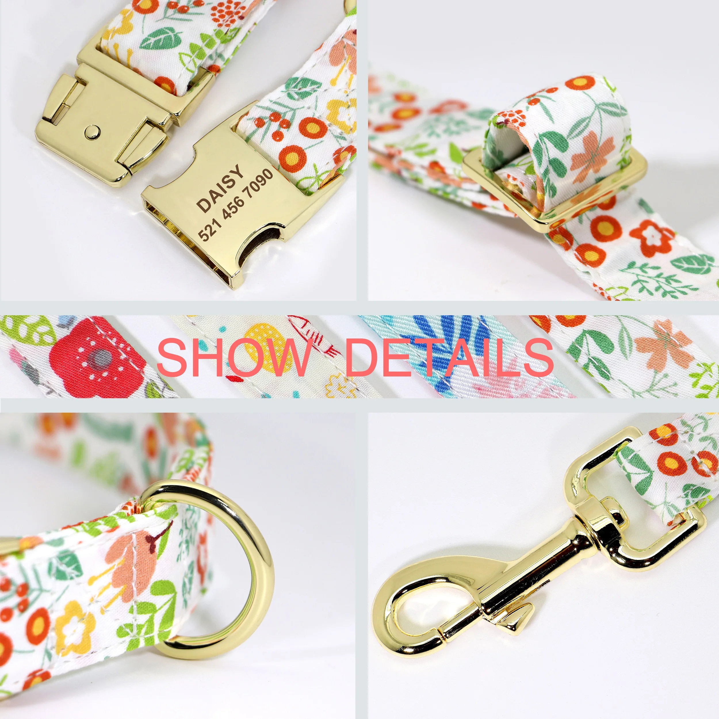 Купить Personalized Dog Collar Leash Set Printed Nylon Pet Collars Engraved Pet Flower Collar Walking Lead For Small Medium Large Dogs за 650рублей