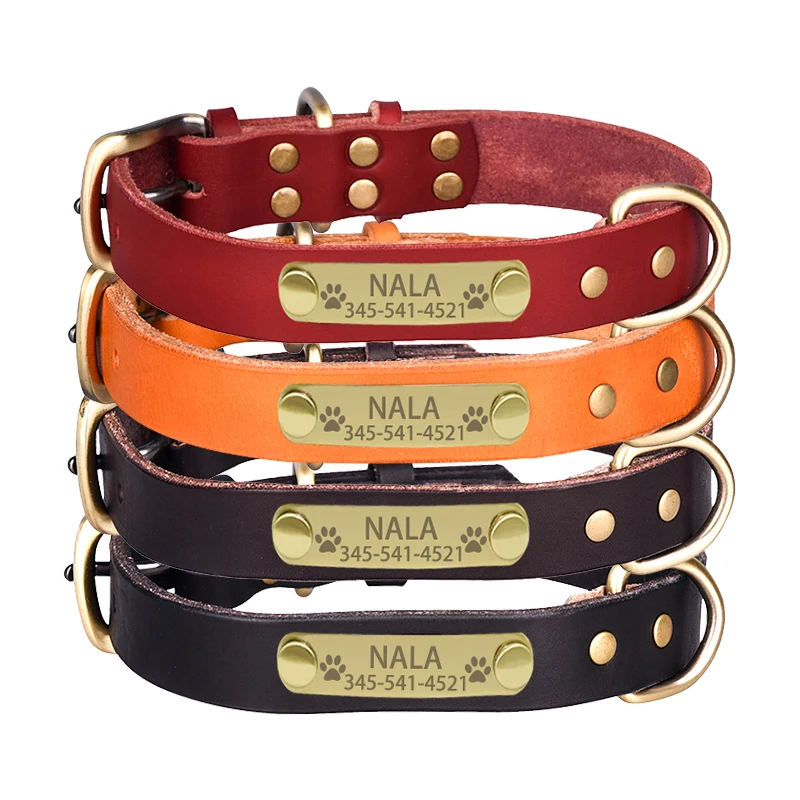 Купить Personalized Genuine Leather Nameplate Dog Collar Custom Free Engraved ID Name Tag Pet Dog Collars for Small Medium Large Dogs за 300рублей