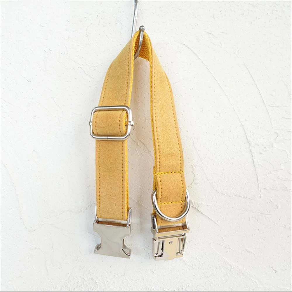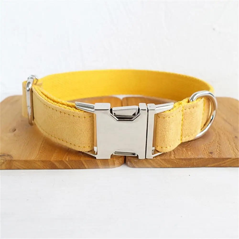 Купить Personalized Pet Collar Free Engraving Custom Puppy ID Tag Adjustable Silver Black Buckle Yellow Velvet Collars Leash Set за 350рублей