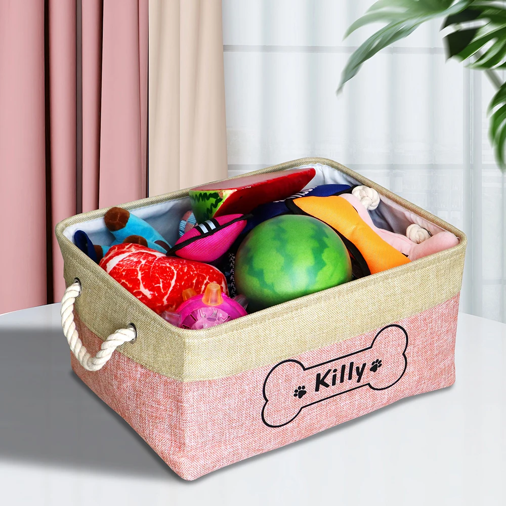 Купить Personalized Pet Toy Storage Basket Toy Clothes Bin Dog Custom Name DIY Canvas Collapsible Box Free Print ID Pet Accessories за 400рублей