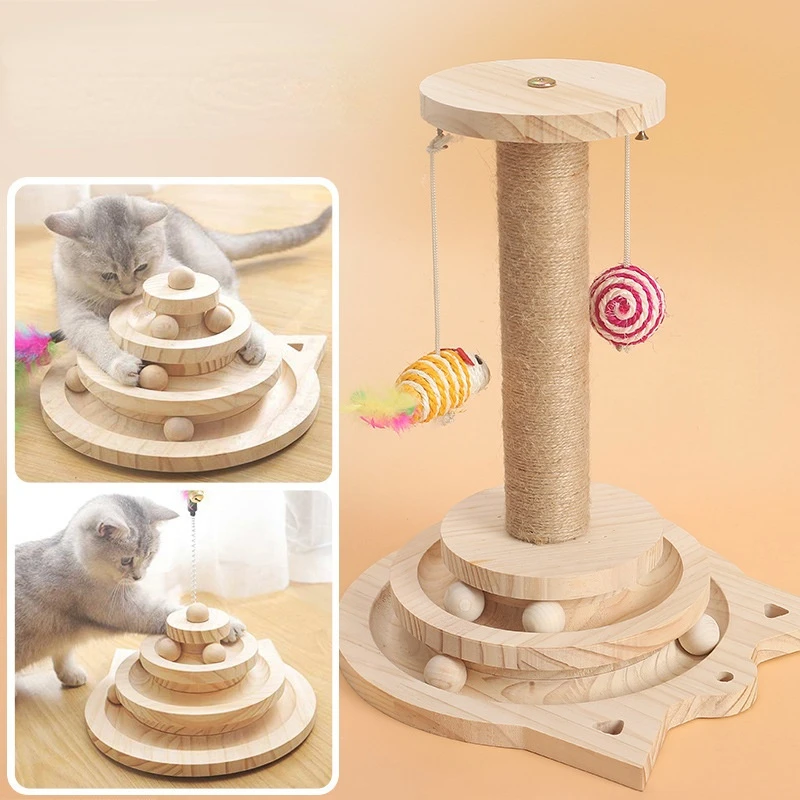 Купить Pet Cat Scratcher Tree Tower Wood Cute Ball Sisal Fidget Toy Post Turntable Funny Kitten Training Climbing Intelligence Exercise за 1450рублей