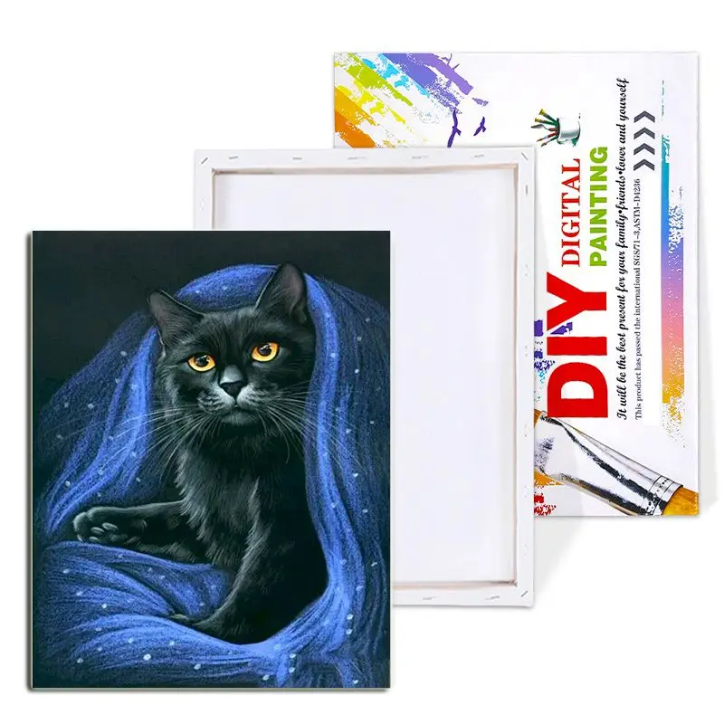 Купить PhotoCustom Diy Oil Painting By Numbers Black Cat HandPainted On Canvas Unique Gift Acrylic Kit Picture Adult For Home Decoratio за 300рублей