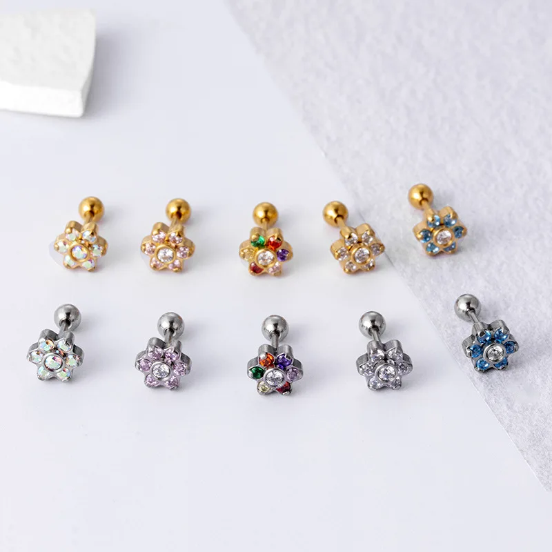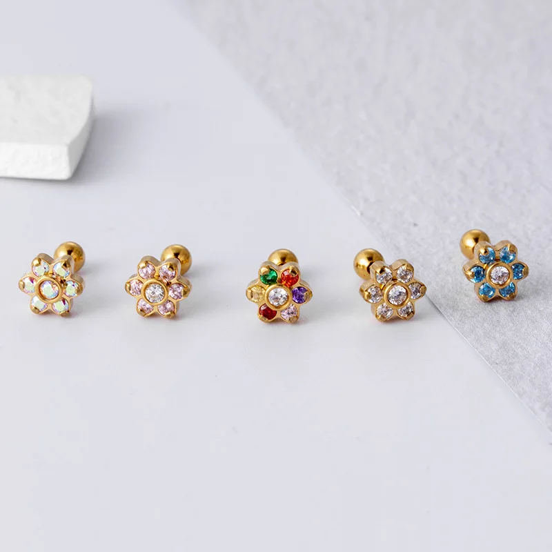 Купить Piercing Conch Cartilage Studs Earring Stainless Steel Colorful Zircon Flowers Helix Tragus Earbone Stud Lobe Piercing Jewelry за 250рублей