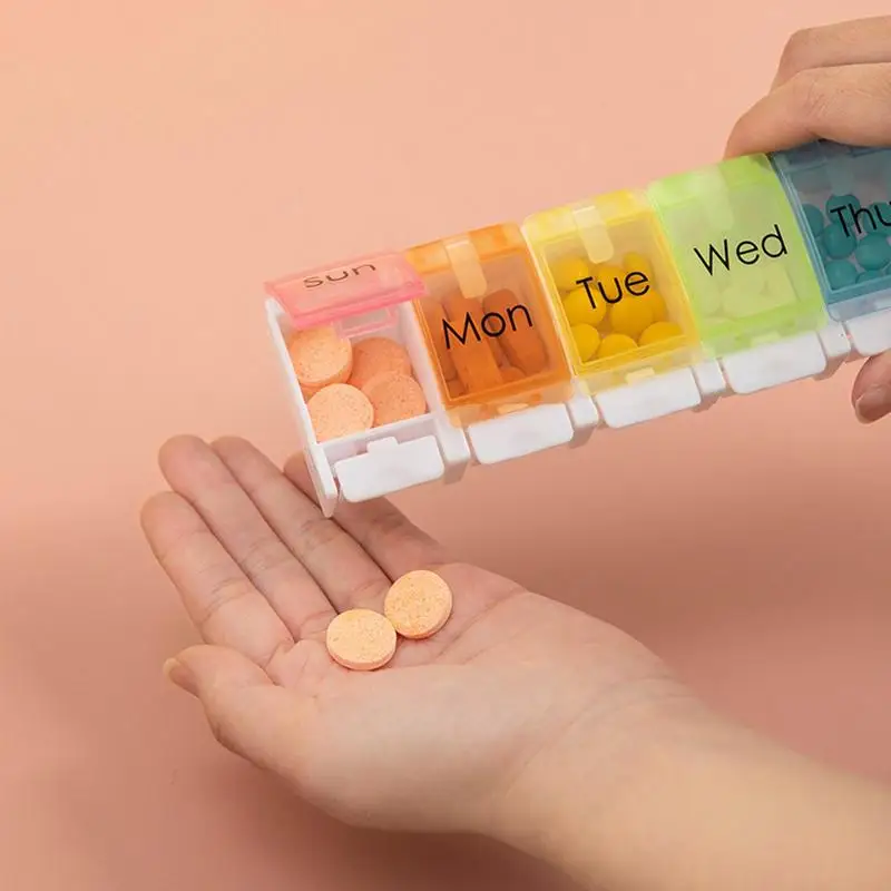 Купить Pill Organizer For Travel Vitamin Box 7 Day With Spring Open Design Portable Vitamin Case Perfect For Daily Or Holiday Use за 150рублей