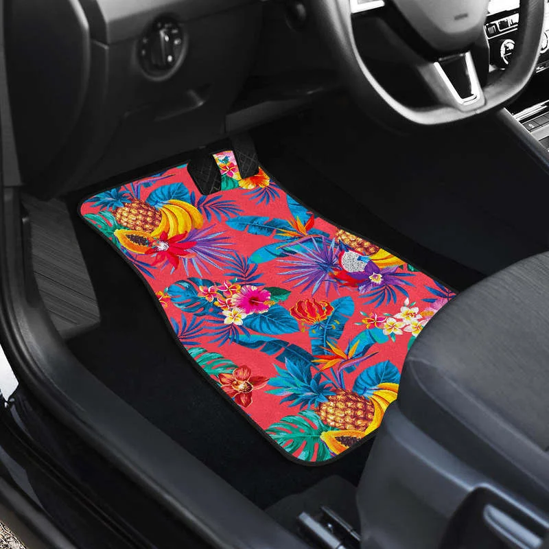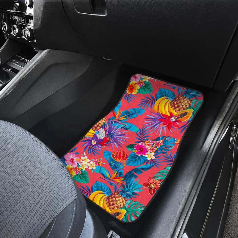 Купить Pink Hawaiian Fruits Pattern Print Front and Back Car Floor Mats Heavy Carpet Front and Rear Full Set 4PCs Pack за 850рублей