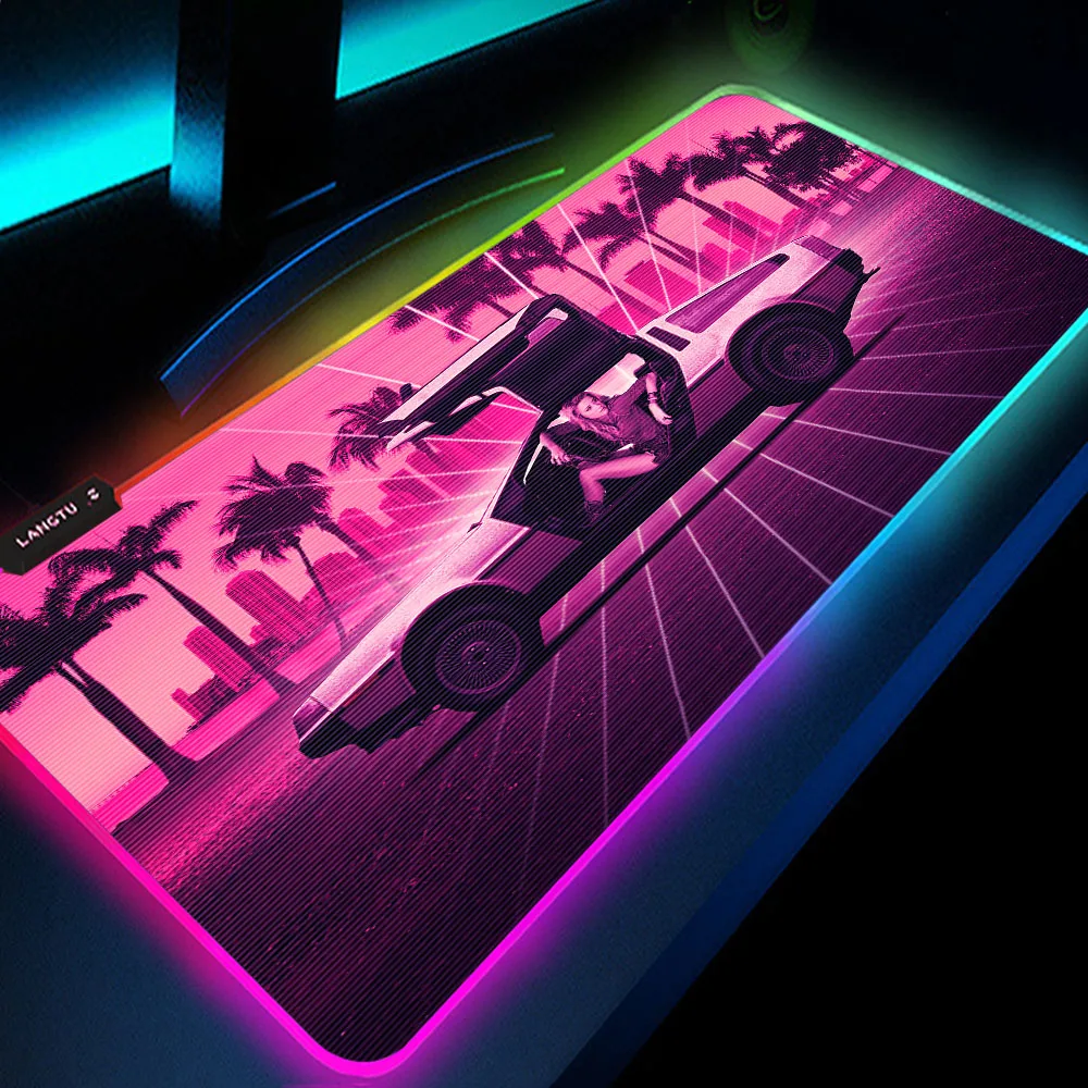 Купить Pink Mouse Pad Gamer Rgb Retrowave Synthwave Rgb Mousepad Led Setup Gamer Accessories Leds for Gaming Carpet Xxl DropShipping за 1000рублей