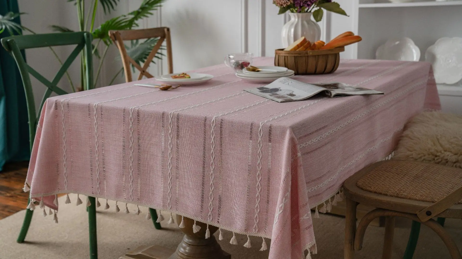 Купить Pink Striped Elegant Table Tablecloths Tassel Rectangular Linen Tablecloth Table Cover Home Kitchen Banquet Wedding Dining Decor за 550рублей