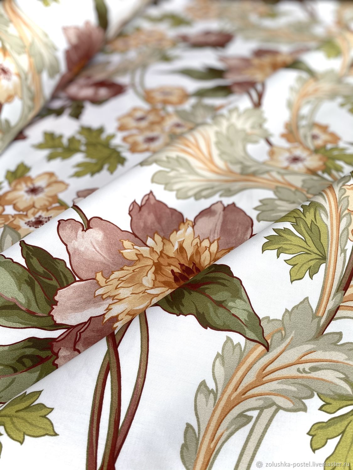 Премиум сатин серый с цветами Императорский пион . . .