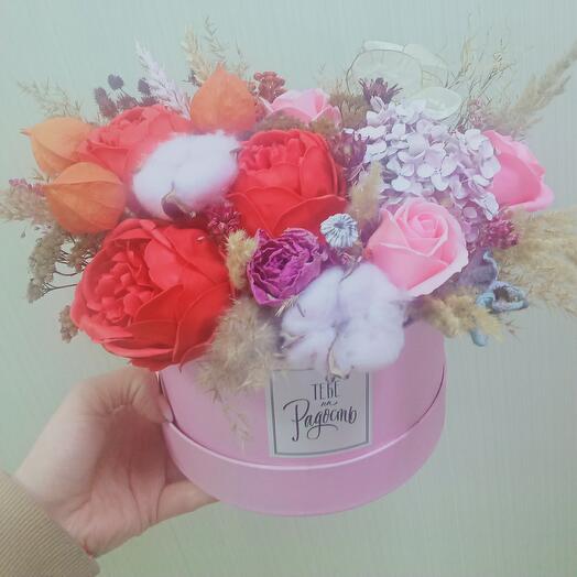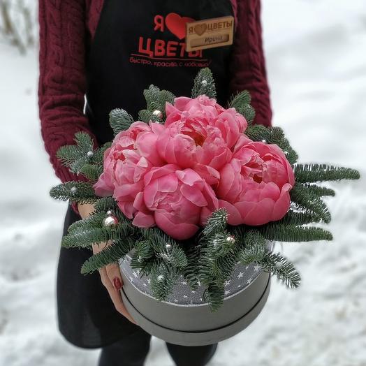 8 770 ₽ . Бесплатная доставка завтра с 8:00 в течение 3‑х часов . Заказать . Купить в 1 клик . 30 см . 30 см . Пионы - 17, Шляпная коробка (25x22см), Оазис, Пленка, Лента .