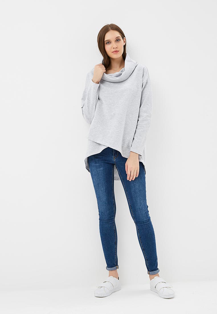 Женская толстовка без капюшона на молнии. Модель свободного кроя с заниженной линией плеча.