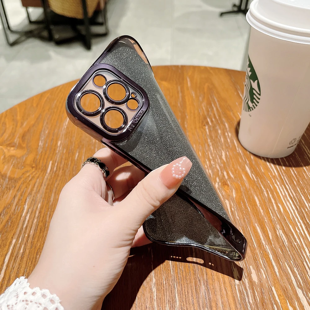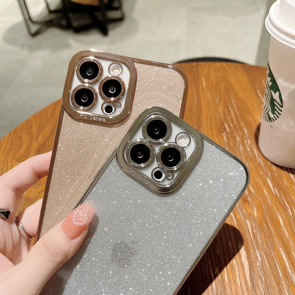 Купить Plating Edge Phone Case For iPhone 14 13 12 11 Pro XS Max XR X 8 7 Plus SE 2020 Clear Soft TPU Back Cover With Glitter Flake за 150рублей