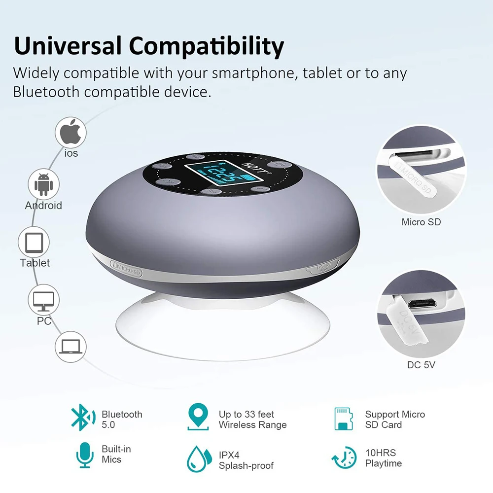 Купить Portable Shower Bluetooth Speaker Waterproof Wireless Music Speaker Handsfree Call phone Suction with FM Microphone for Bathroom за 2550рублей