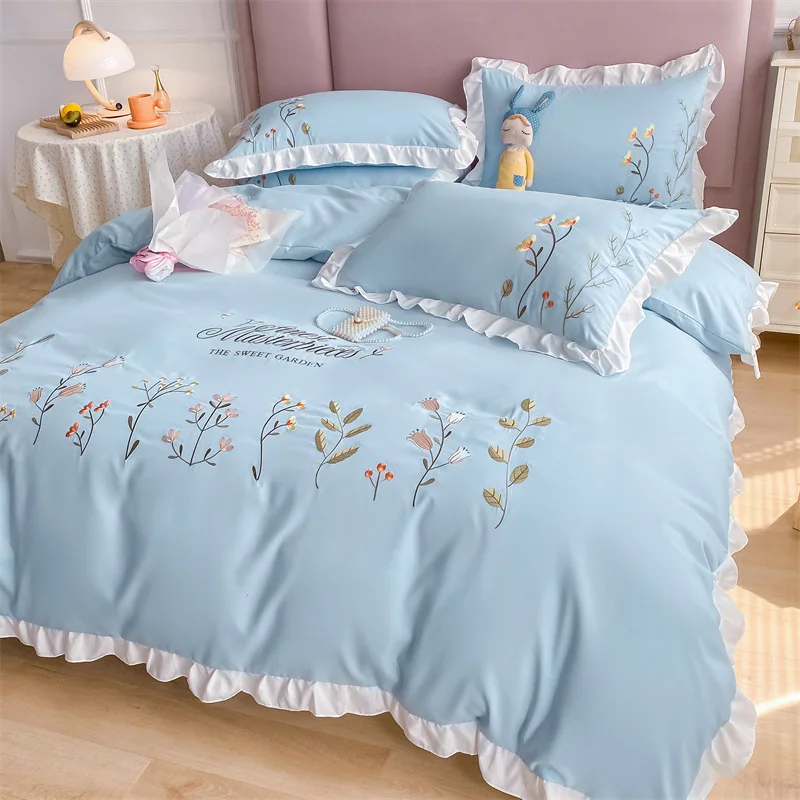 Купить Princess style Embroidery Queen King Bedding Sets Bed Quilt Cover Bed Set Duvet Cover Bed Cover Fitted Sheet Home Textile 4Pcscs за 3950рублей