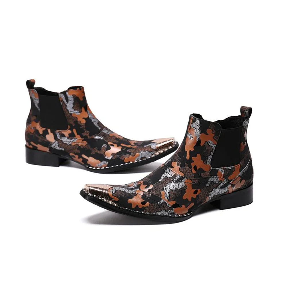 Купить Printing Zipper Stretch Fabric Men Bordered With Metal Pointed Toe Ankle Boots Plus Size 46 British Style Business Dress Shoes за 4050рублей