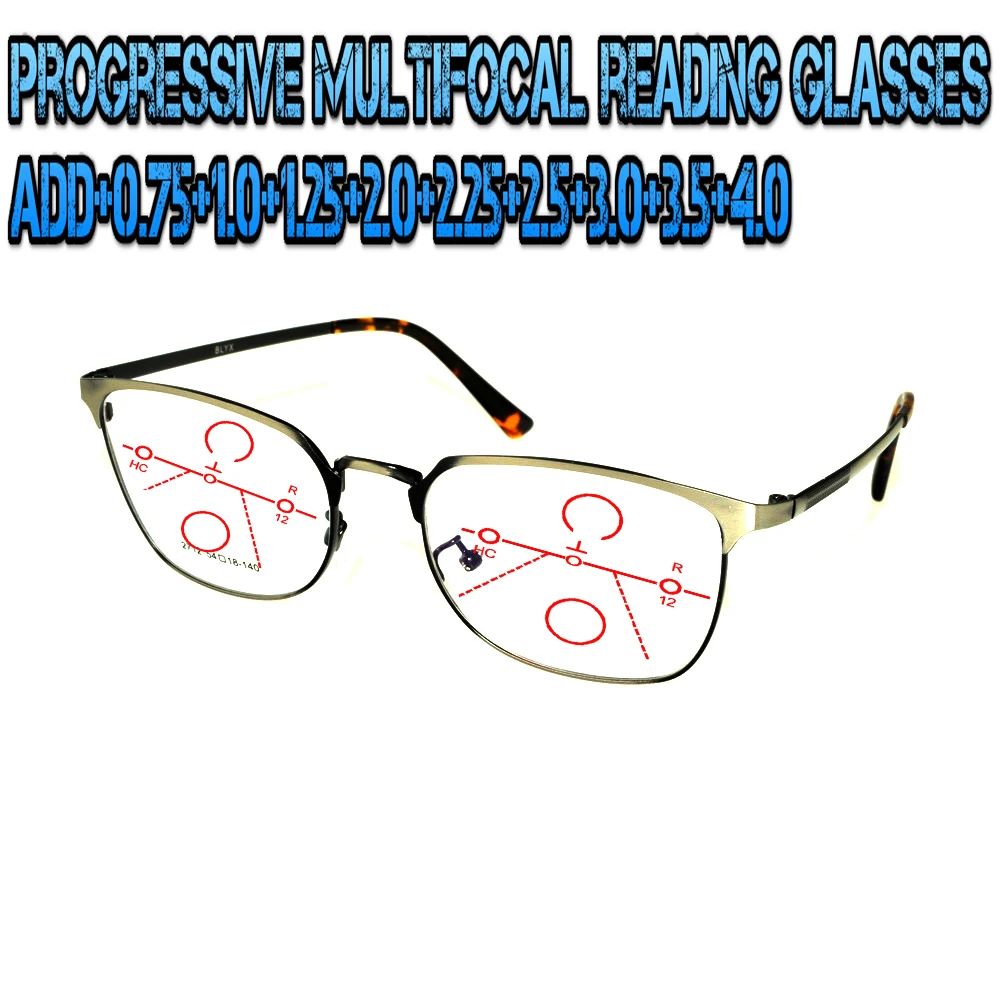 Купить Progressive Multifocal Anti Blu Light Reading Glasses Red Metal Frame Men Women High Quality Cat's Eye Large Size Frame+0.75To+4 за 850рублей