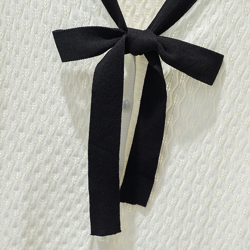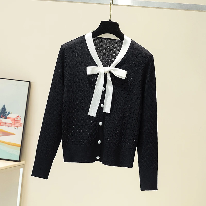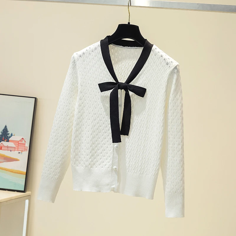 Купить Pull Femme Spring Autumn Knitted Sweater Women 2021 Fall Korean Long Sleeve Hollow Out Cardigan Sweaters Elegant Bow Ladies Tops за 1050рублей