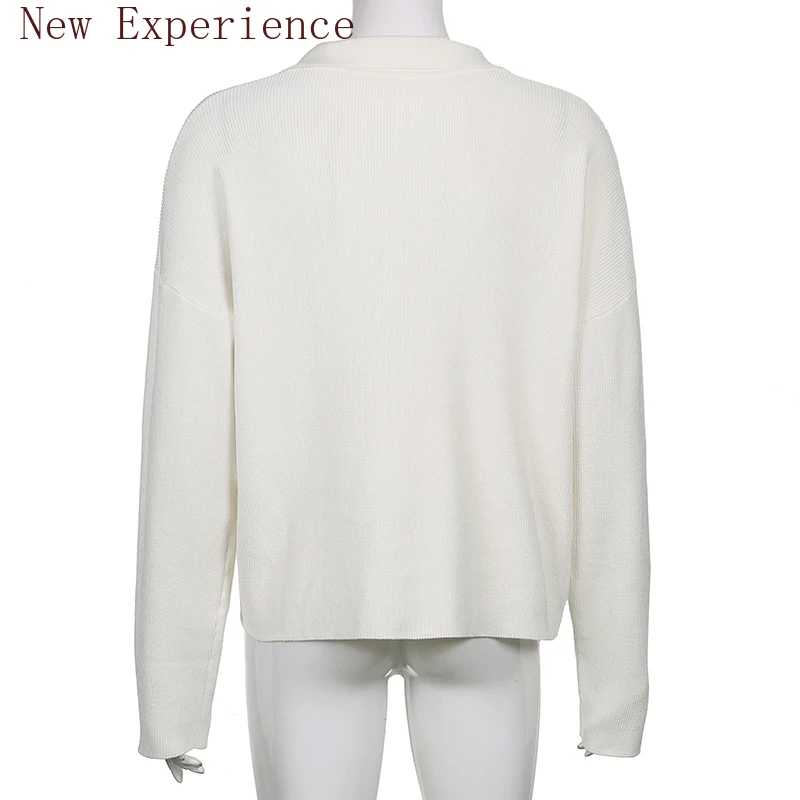 Купить Pullover Casual Solid Color Sweater Simple Basic Lapel Loose Y2k Autumn Knitted Pullover Lapel Cropped Top Basic Streetwear 90s за 800рублей
