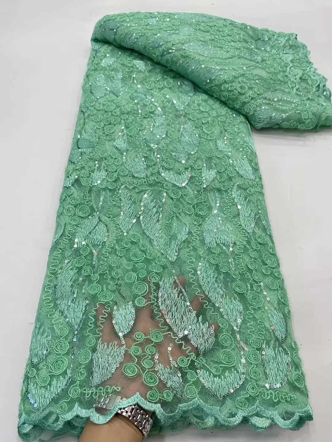 Купить Pure Color French Tulle Rope Lace Fabric 5Yards Embroidery African Cord Net Lace Fabric With Sequins Celebration Party Dresses за 2050рублей