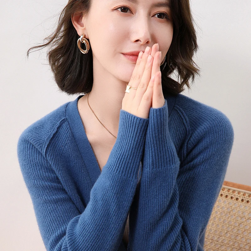 Купить Pure Wool Knitted Cardigan Woman Top, 2021 Spring And Autumn New Style, V-Neck Loose And Versatile Jacket, Soft And Breathable за 1450рублей