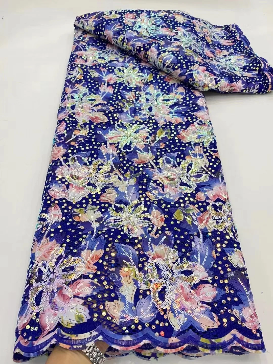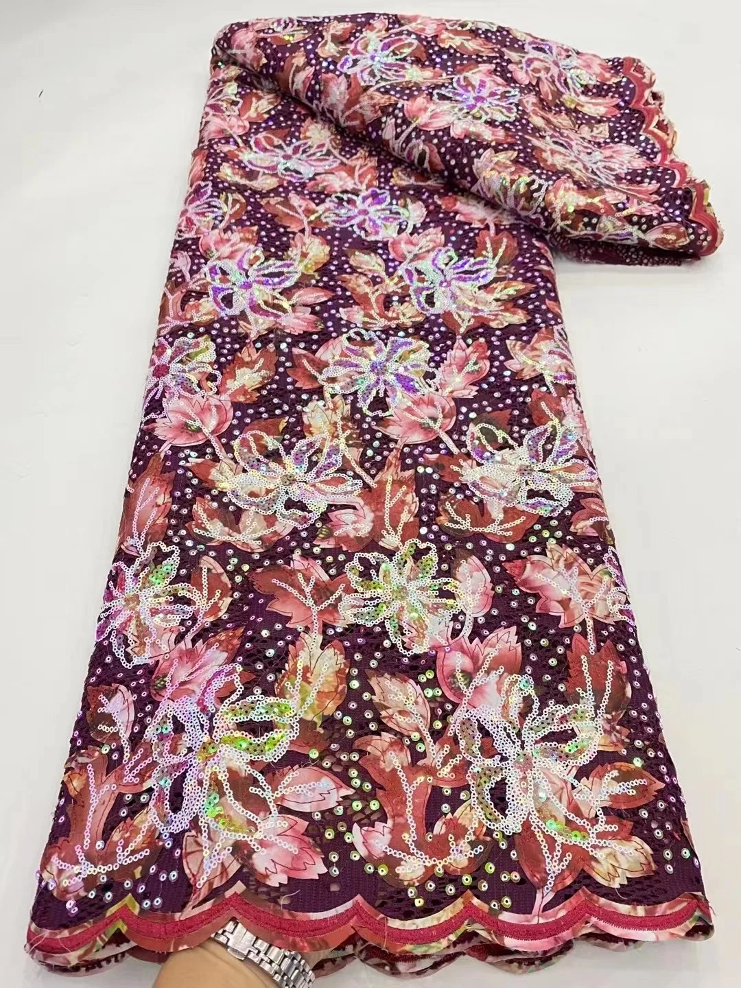 Купить Purple Latest Nigerian Laces 2022 High Quality Sequence Velvet Fabrics Tulle Sequin African Print Fabrics Lace 5 yards за 3200рублей