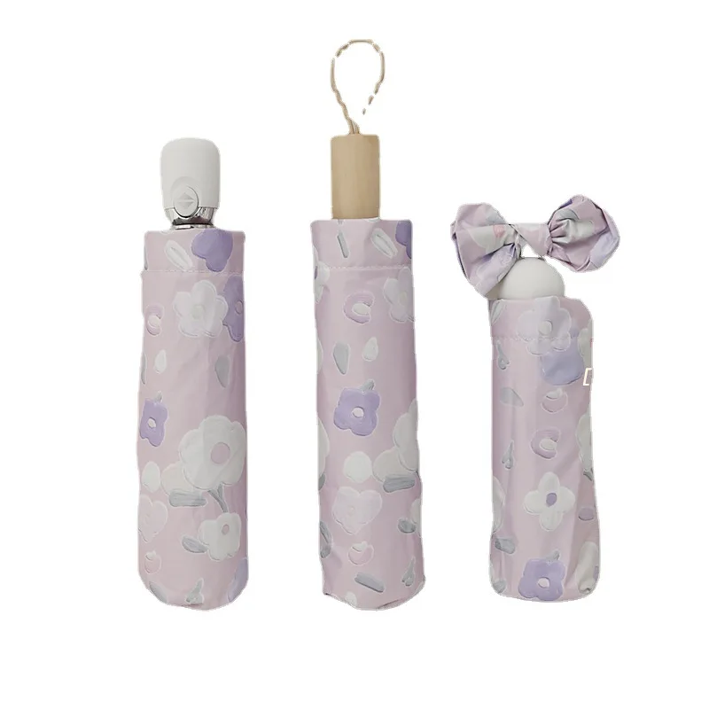 Купить Purple Oil Painting Flower Sun Umbrella Black Glue Full Automatic Umbrella Sun Protection UV Protection Rain Folding Umbrella за 350рублей