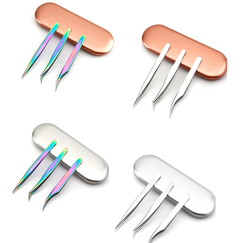 Купить Q1QD 3PCS Eyelash Extension Tweezers Set Stainless Steel Straight Curved Tip Tweezers за 450рублей