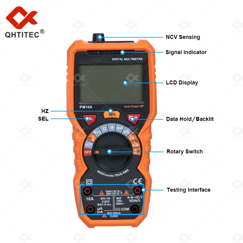 Купить QHTITEC Digital Multimeter Auto Range NCV AC DC Voltage Current Capacitor Ohm Frequency Meters Professional Electrician Tools за 1200рублей