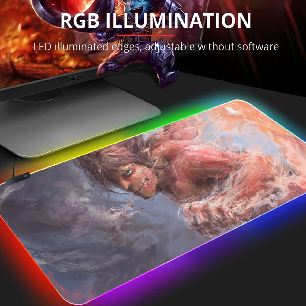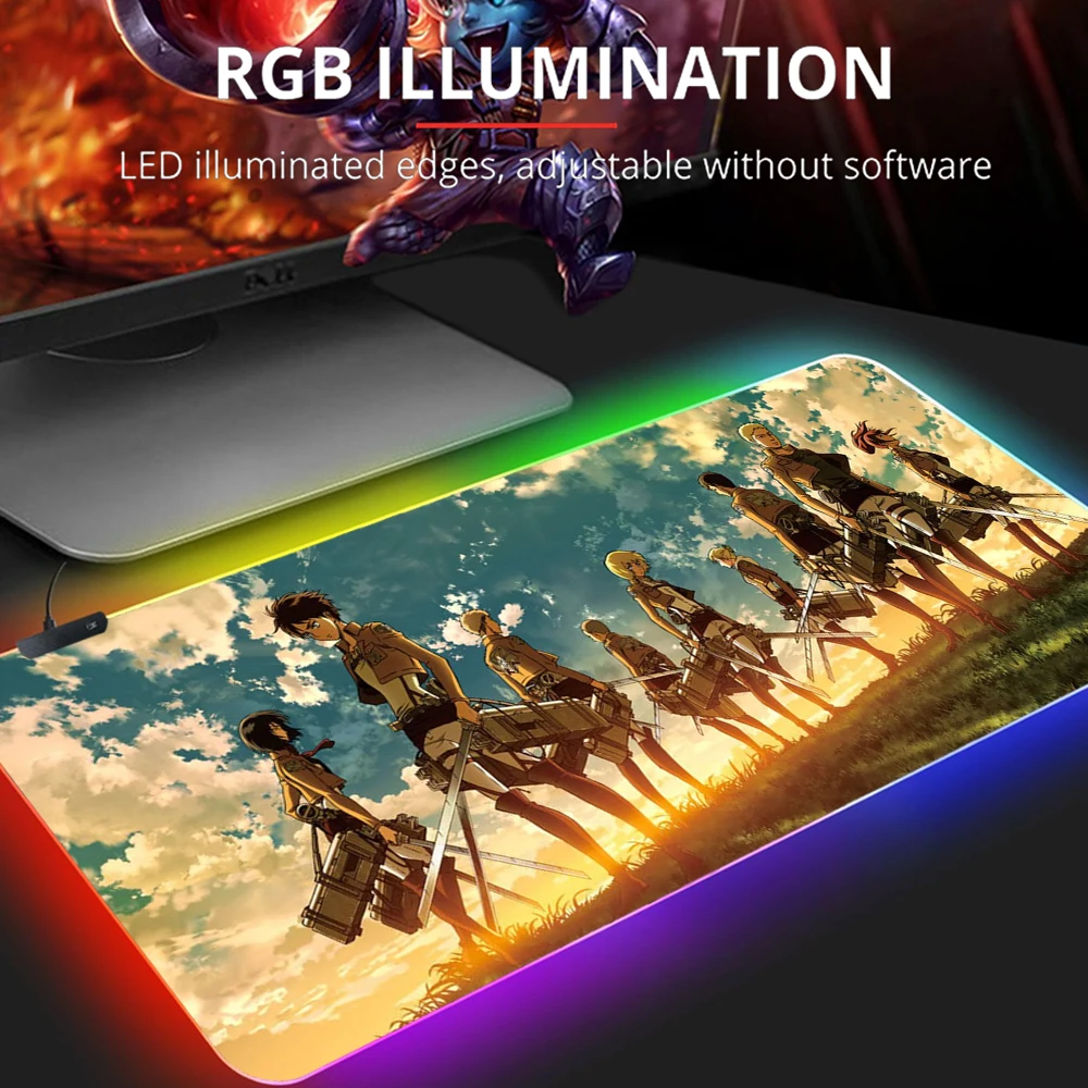 Купить RGB Attack On Titan Mause Pad Gaming Mouse Computer Gamer Keyboards Accessories Mat Keyboard Backlight Mousepad Alfombrilla Xxl за 550рублей