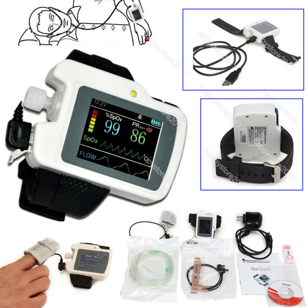 Купить RS01 Patient Sleep Apnea Screen Meter Nose Air Flow Wrist Respiration Sleep Monitor Spo2 PR Alarm Nasal Cannula Record Software за 8500рублей