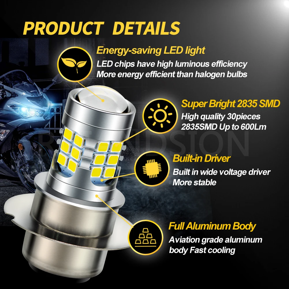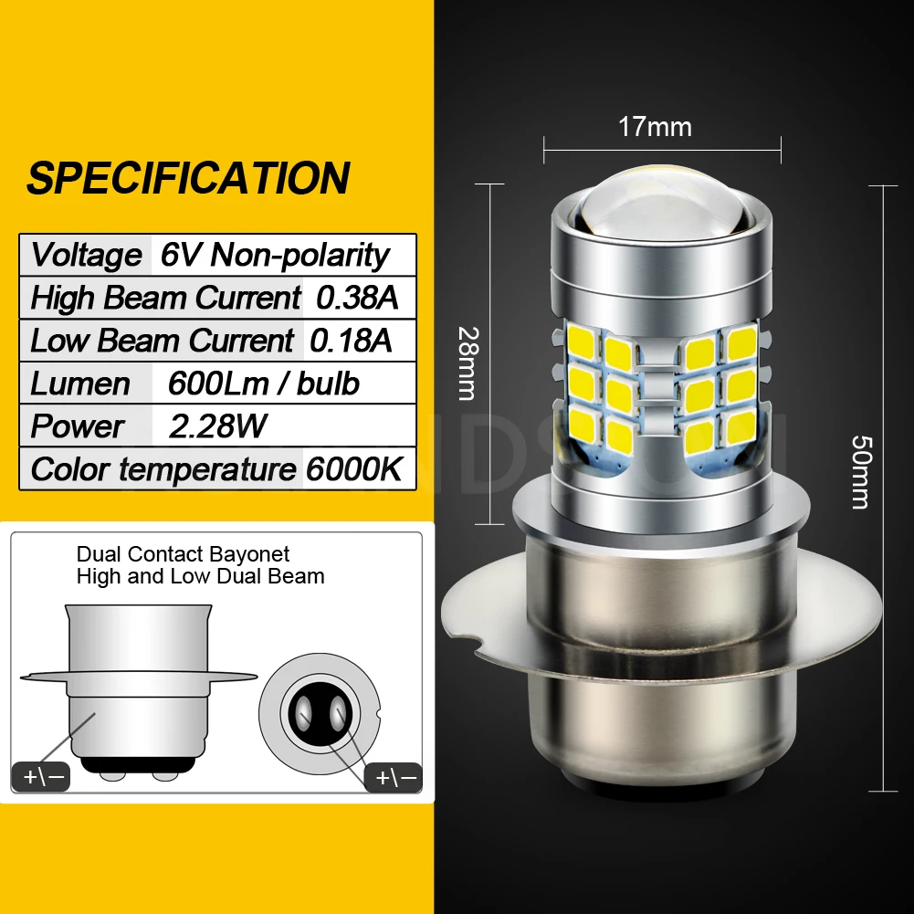 Купить RUIANDSION 1Pcs 6V P36D LED Bulb 2835SMD Motorbike Headlight Car Fog Light High Low Beam White Motorcycle Driving Lamp 6000K за 650рублей