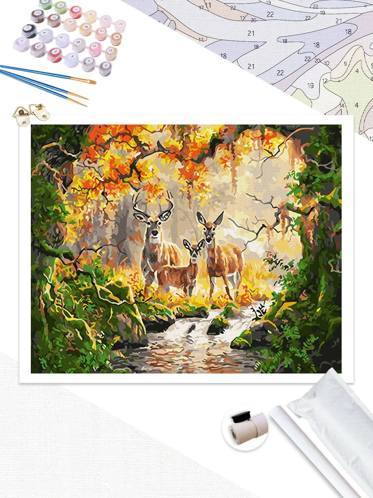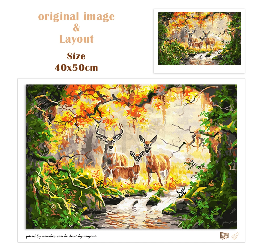 Купить RUOPOTY DIY Pictures By Number Deer Kits Painting By Numbers Forest Drawing On Canvas Hand Painted Paintings Gift Home Decor за 350рублей