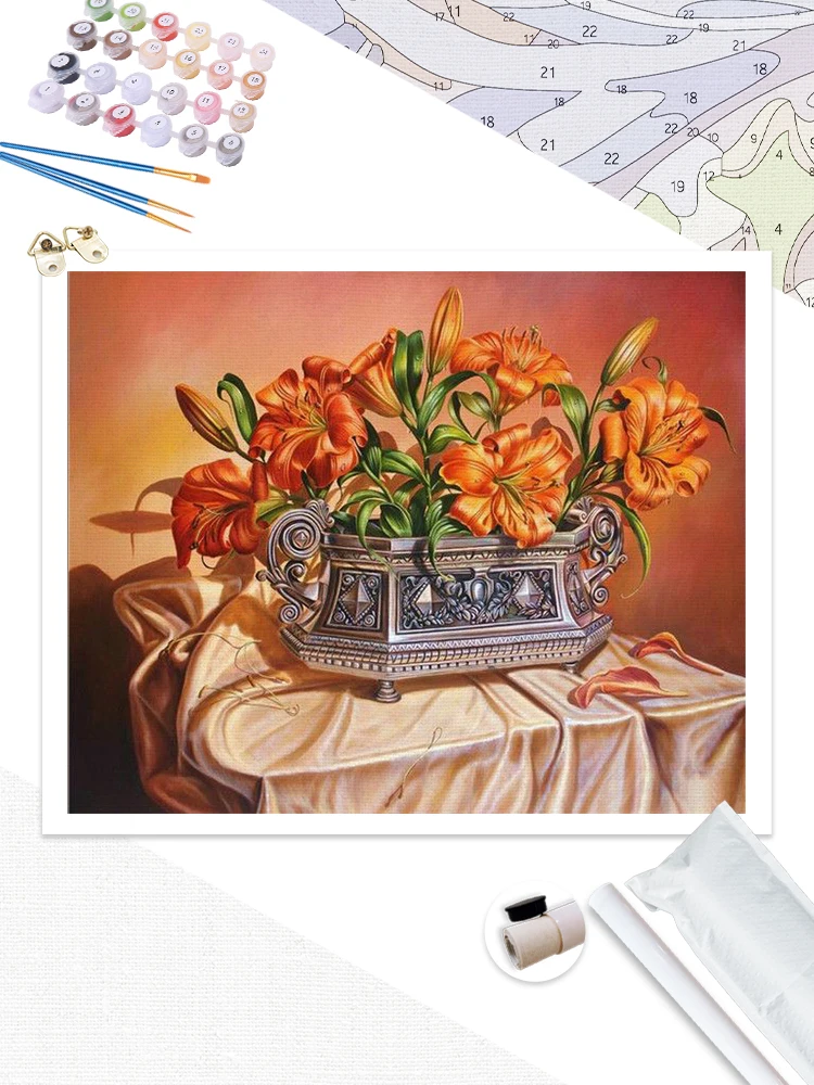 Купить RUOPOTY DIY Pictures By Number Flower Kits Drawing On Canvas Painting By Numbers Table Hand Painted Picture Art Gift Home Decor за 300рублей