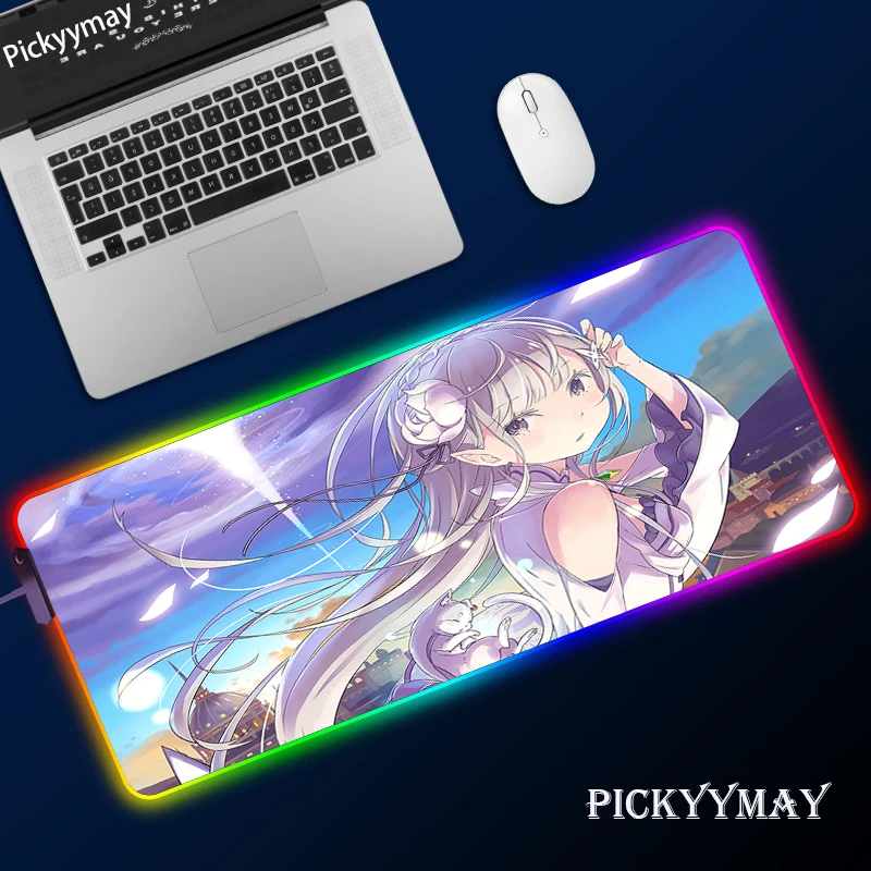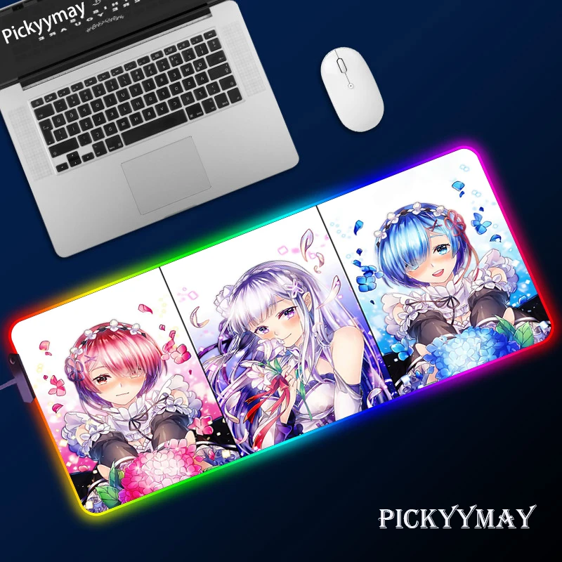 Купить Re:Zero RGB Mouse Pad 900x400mm Rubber Gaming Mouse Pad LED Laptop Keyboard Mat Anti-slip Best Choice Mousepad XXL Desk Mat за 800рублей