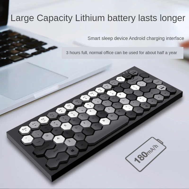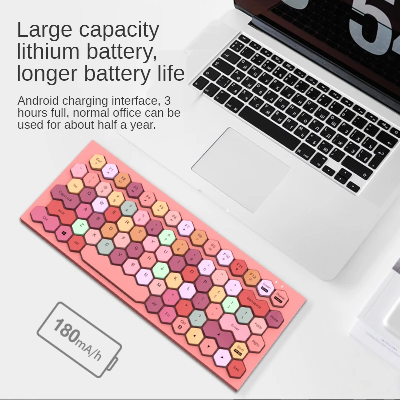 Купить Rechargeable Wireless Bluetooth Keyboard Multimedia Hexegon Keycaps Bluetooth 5.1 and Wired Pink keyboards for Mac PC Laptop за 1750рублей