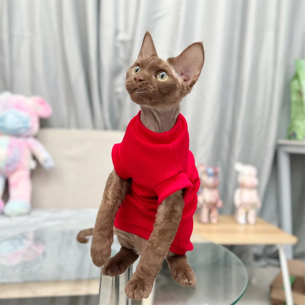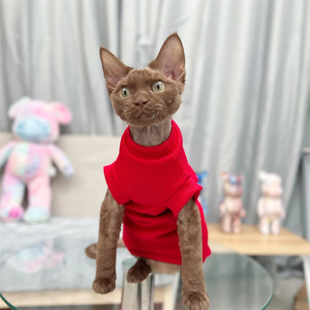 Купить Red Sphinx Costume Conis Kitthen Outfits Spring Fall Warm Devon Rex Cat Jumper Sphynx Cat Clothes for Cats Hairless Cat Clothes за 500рублей