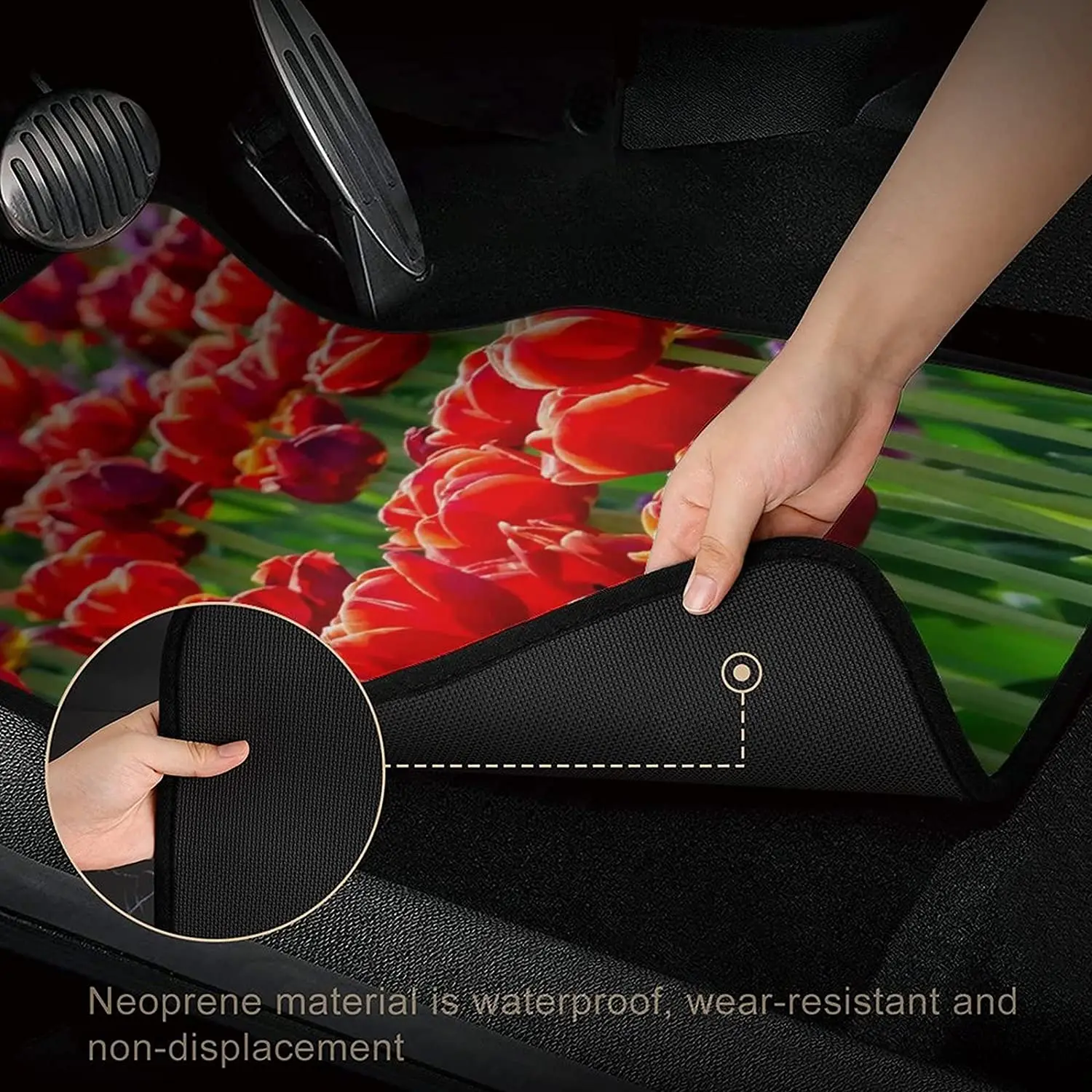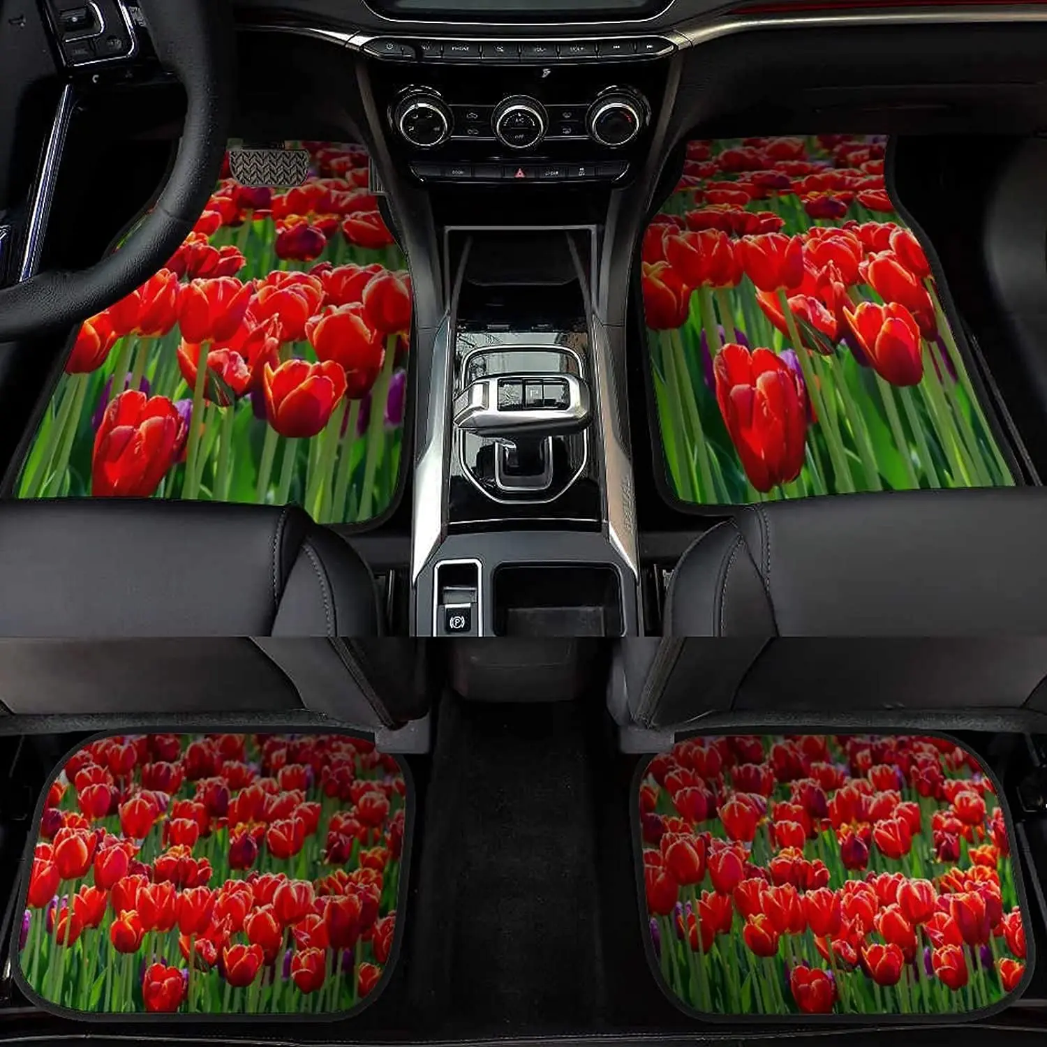 Купить Red Tulip Flower Field Car Mats Universal Drive Seat Carpet Vehicle Interior Protector Mats Funny Designs All-Weather Mats Fit M за 1000рублей