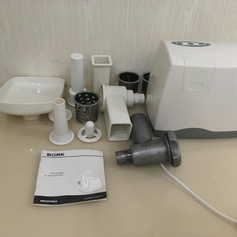У меня мясорубка Борк с 2010 года (самая дорогая модель, у которой пердняя панель из нержавейки и шнур убирается снизу в днище) . Никому не посоветую! Да смотрится она красиво, но качество - г-но .