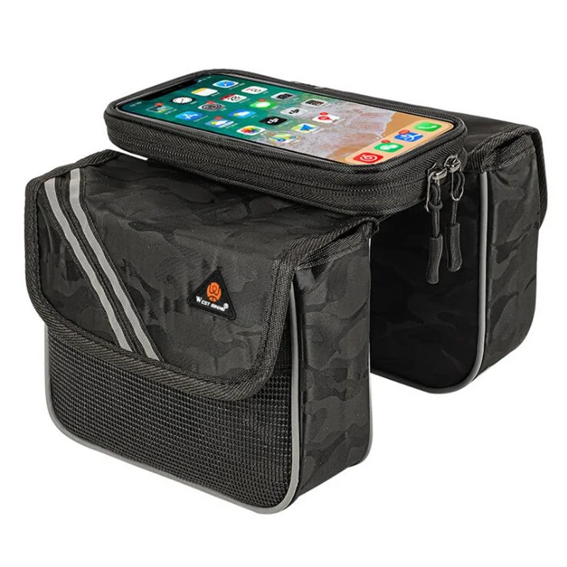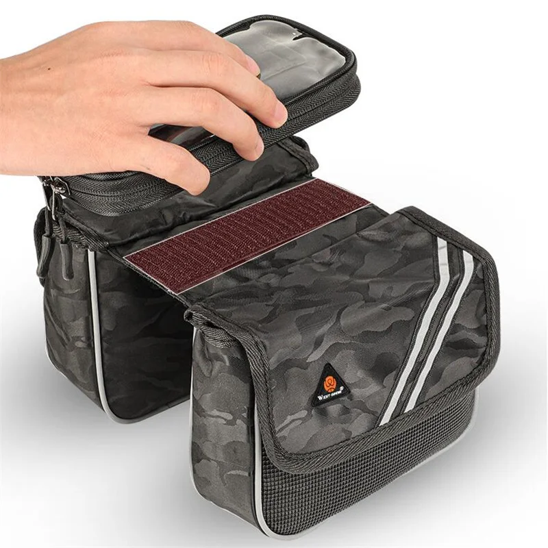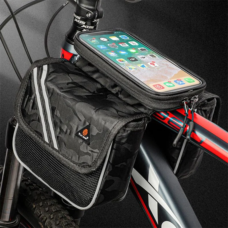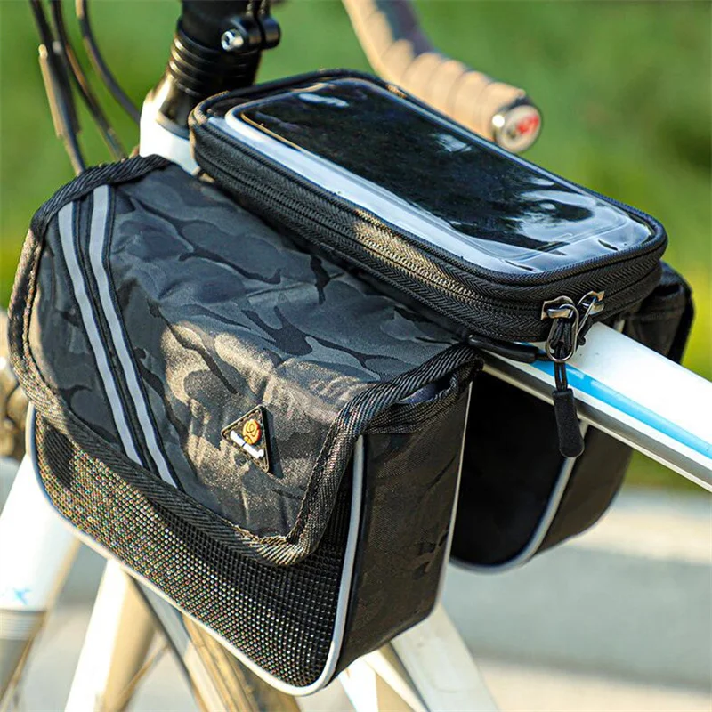 Купить Reflective Bicycle Bag 6.5 inch Phone Bag Rainproof Front Frame Bag Sensitive Touch Screen MTB Road Bike Accessories за 700рублей