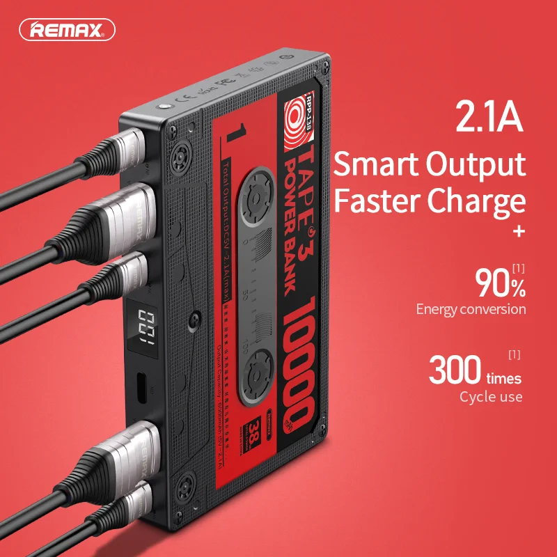 Купить Remax 10000mAh Power Bank with Digital Display 2.1A Fast Charge Portable Mini Battery Retro Tape Design for Apple Xiaomi Huawei за 1250рублей