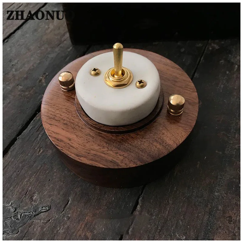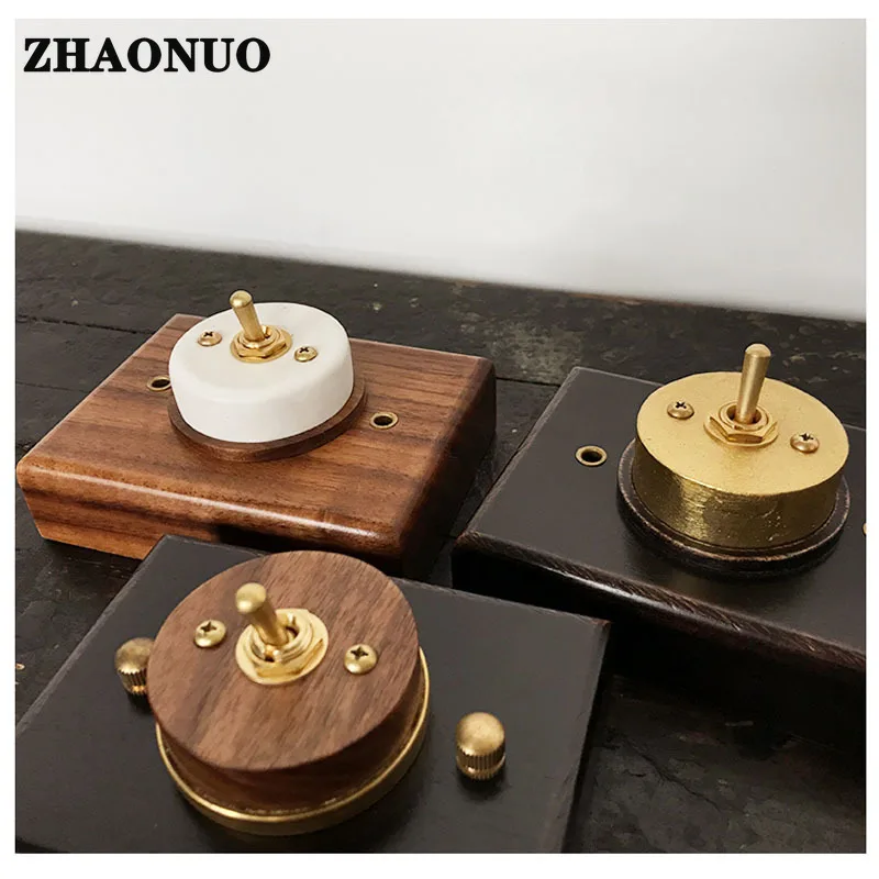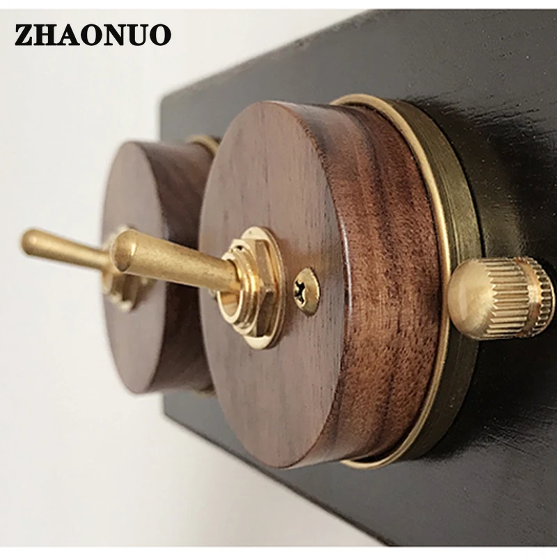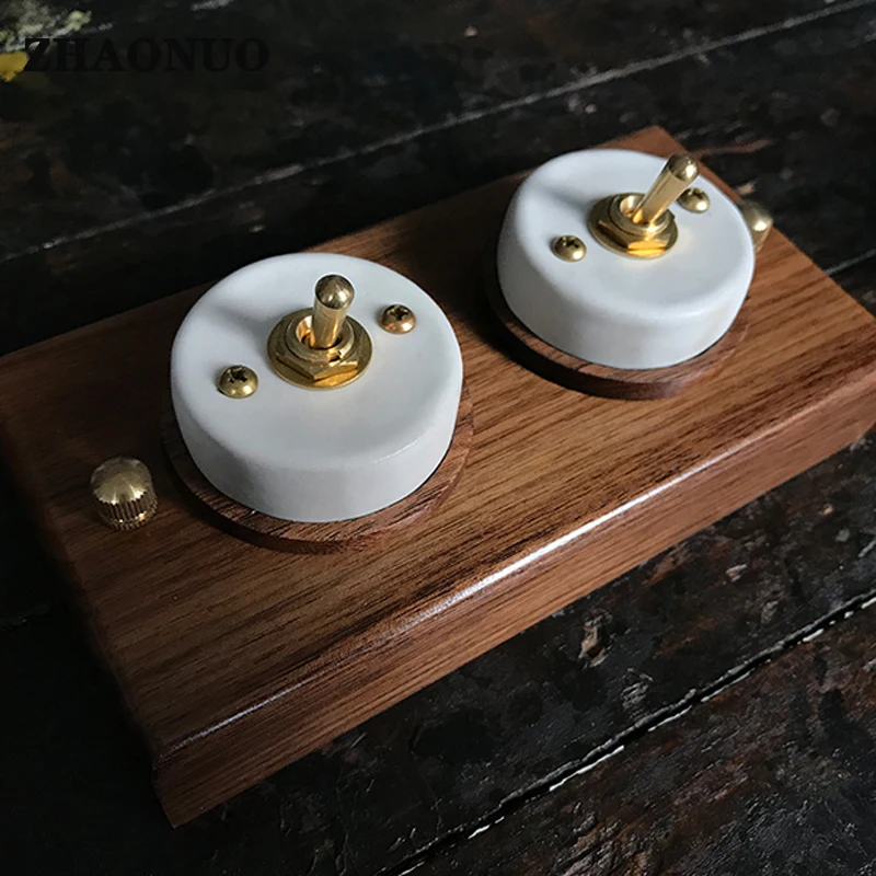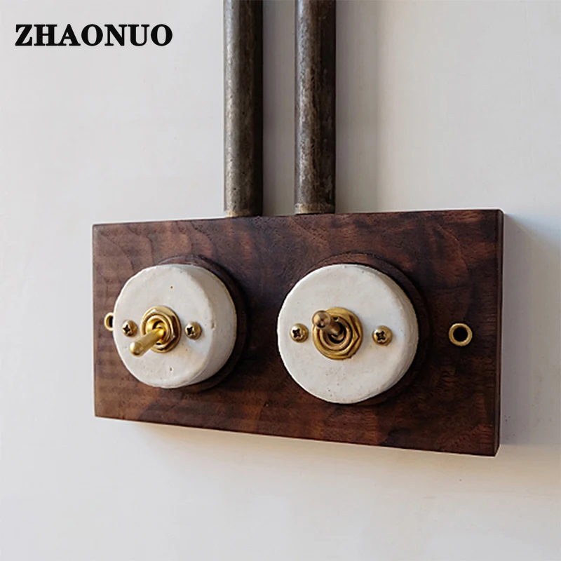 Купить Retro Black Walnut Base Ceramic Wood Brass Toggle Switch 1-4 Gang 2 Way Wall Light Switch за 1650рублей