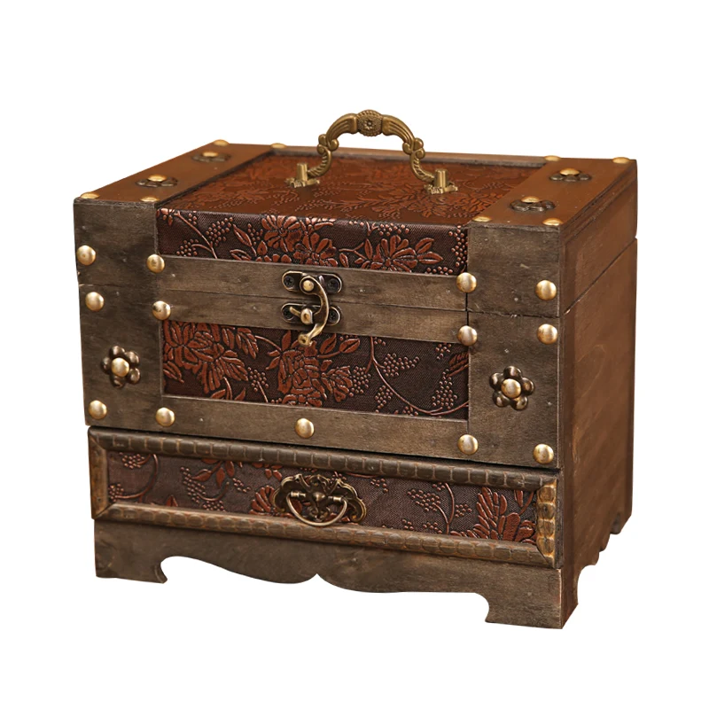 Купить Retro Mirror Makeup Vanity Box Exquisite Jewelry Box High-End Advanced Large Capacity Wooden Storage Box with Lock за 3250рублей