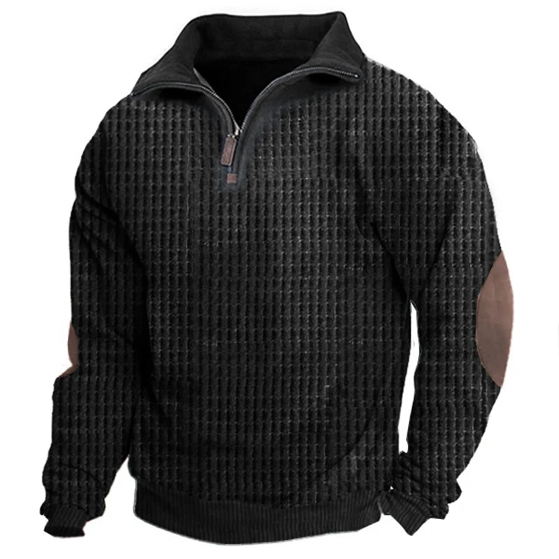 Купить Retro Waffed Patchwork Zip Sweatshirts Men 2023 Spring Turn-down Collar Loose Causal Tops Autumn Long Sleeve Hoodie Mens Clothes за 1200рублей