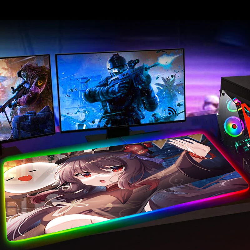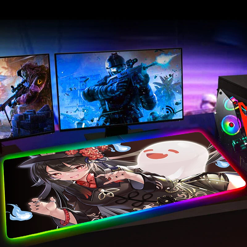 Купить Rgb Hu Tao Genshin Impact Mousepad 900X400MM Computer Gaming Accessiores Mouse Pad L 60X35CM Mause Pad LED Backlit Mat Mausepad за 500рублей